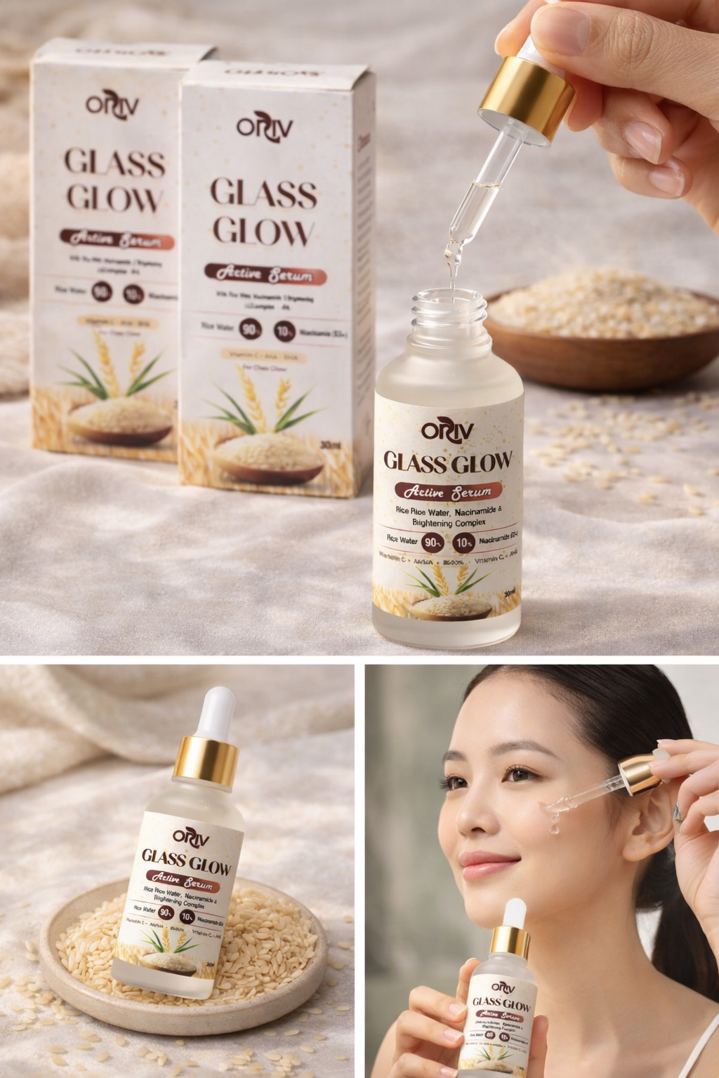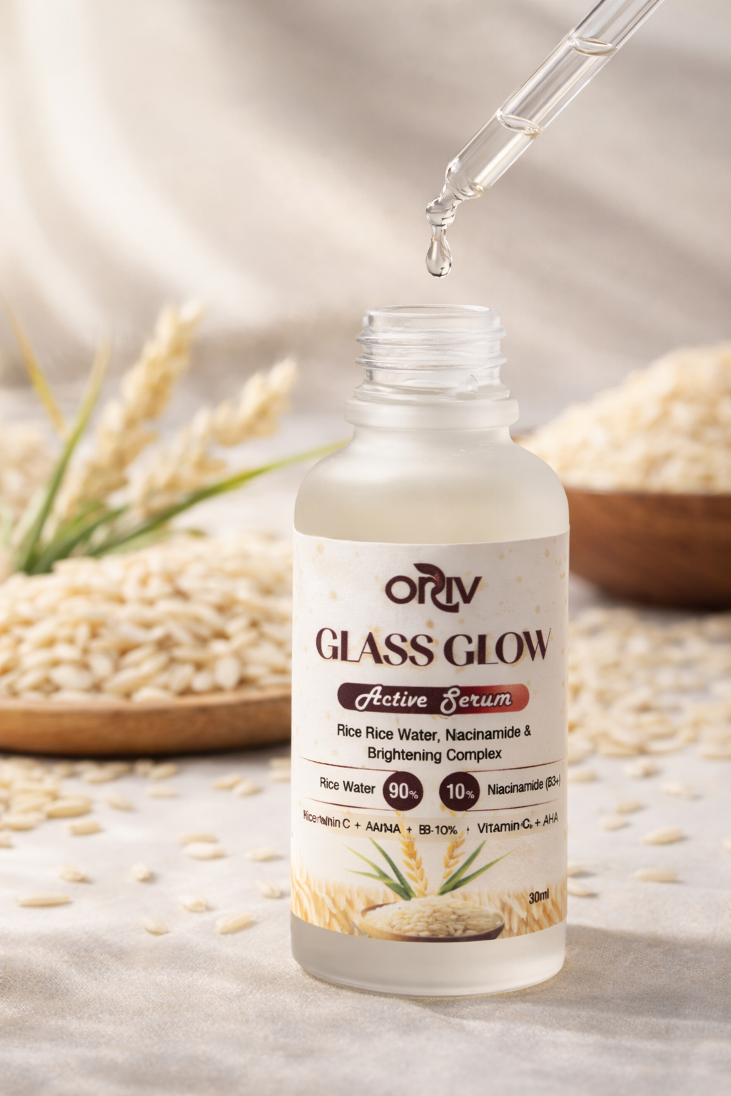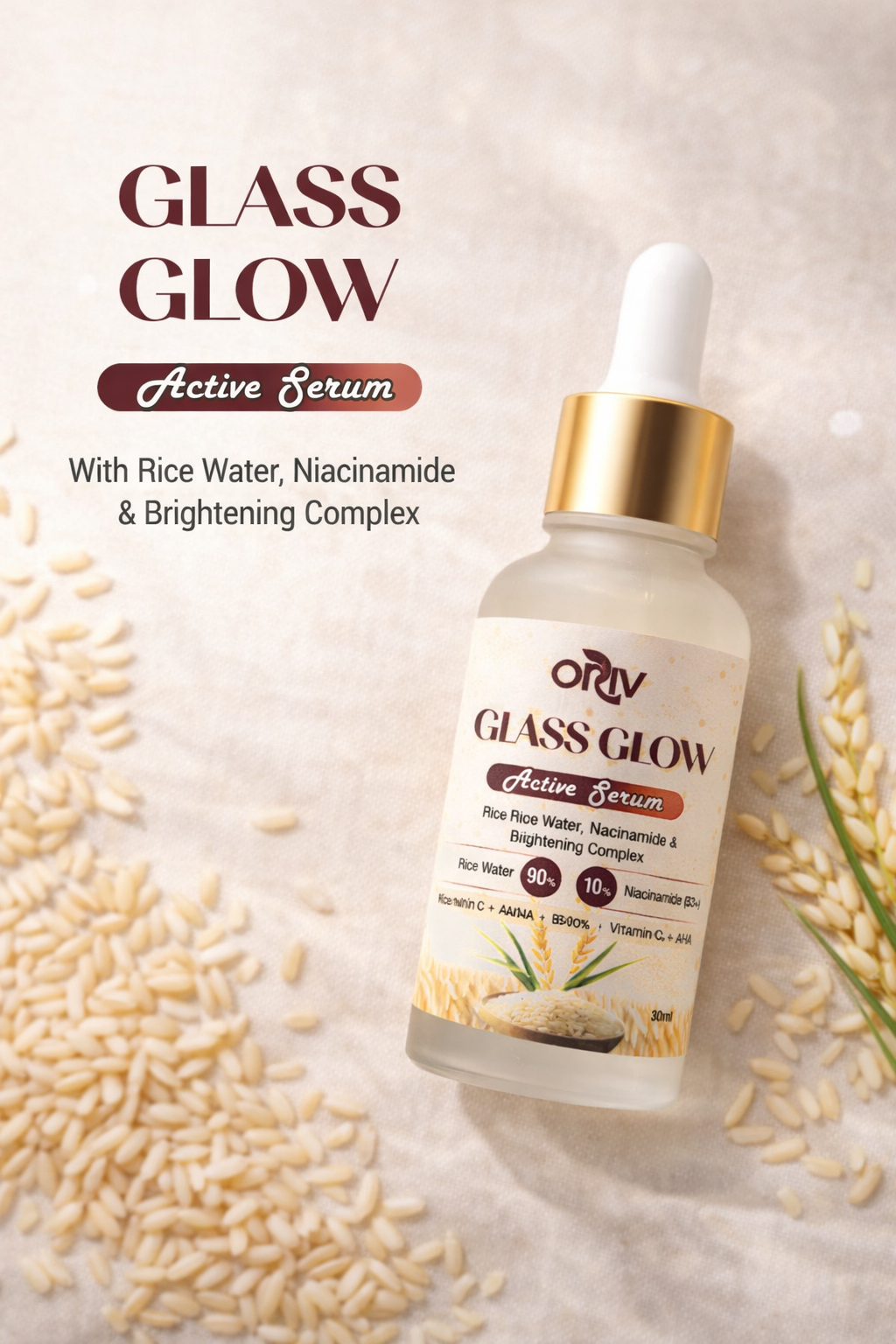 Reveal naturally radiant, glass-like skin with ORIV Glass Glow Active Serum. Powered by 90% Rice Water and 10% Niacinamide (B3+), this lightweight serum helps brighten, smooth texture, and improve overall skin clarity with daily use.